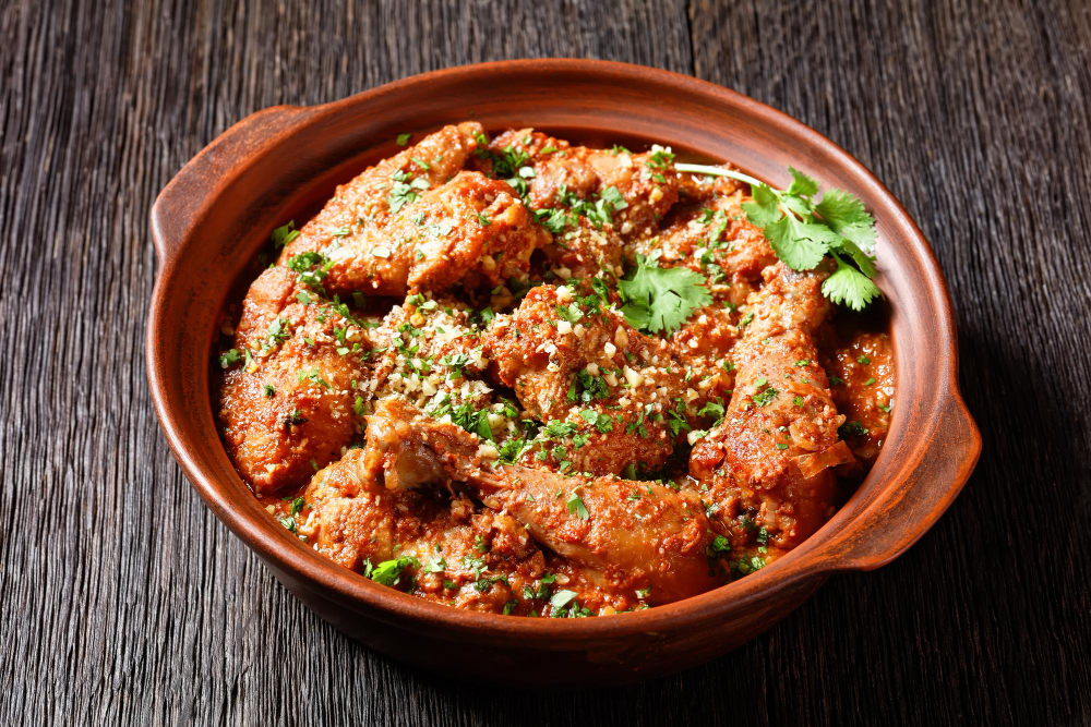 Chicken simmered in a rich creamy tomato sauce with almond meal.